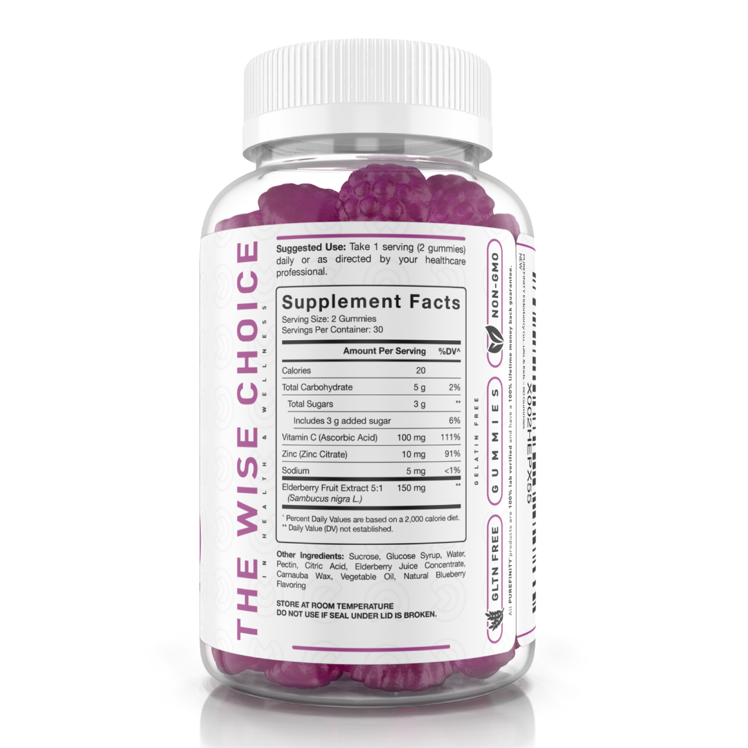 - A blend of Elderberry, Vitamins C, D & Zinc