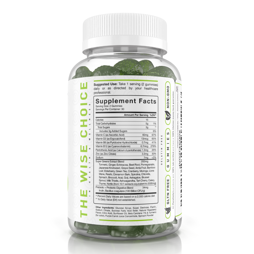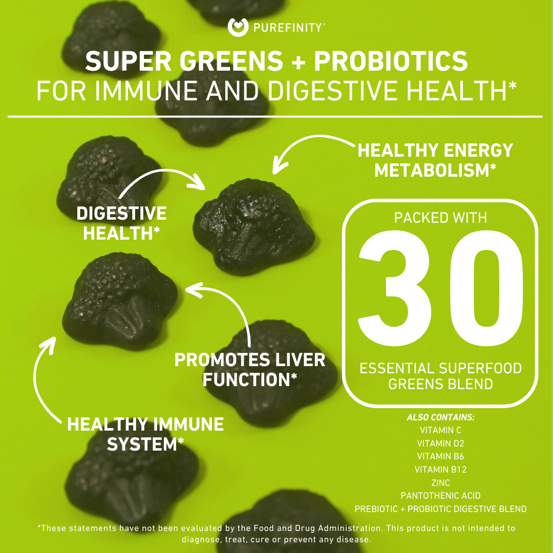 - 30 Essential Superfood Greens Blend – PUREFINITY's Super Greens Gummies contain 30 essential ingredients to help promote a healthy immune system, healthy digestive health and enhanced natural daily energy.*